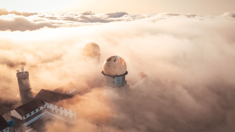 На горе облака бегут и обволакивают собой всё вокруг. Это очень хорошо видно, когда снимаешь с дрона. Сможете увидеть эти кадры в видео, которое мы готовим.