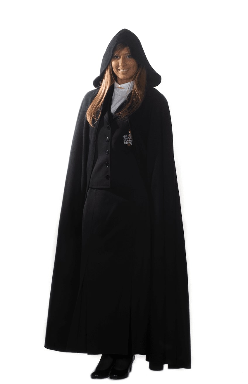 В свою очередь, женский академический костюм был создан лишь в период с 1914 по 1915 год в средних школах Лиссабона и Порту. Все это объясняется тем, что раньше женщины не имели права получать образование или даже принимать участие в научных и культурных мероприятиях. Фактически, современная модель академического убранства женщин была навязана мужчинами, посредством издания указа Великого Совета Ветеранов Университета Коимбры (Magnum Conselho Veteranorum da Universidade de Coimbra). Женское академическое одеяние состоит из черной накидки и костюма, а именно: юбки по колено, белой рубашки, галстука, пиджака, черных колготок и туфель на небольшом каблучке.
